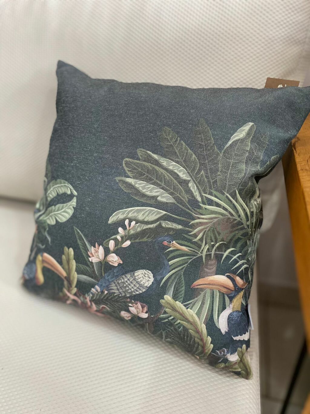 Almofada decorativa com estampa botânica sutil, ideal para compor ambientes com elegância e leveza. Confeccionada em tecido misto, sendo 51% algodão e 49% poliéster, proporciona toque macio e boa durabilidade. O enchimento é feito com 100% de fibra de poliéster, garantindo conforto e volume uniforme.