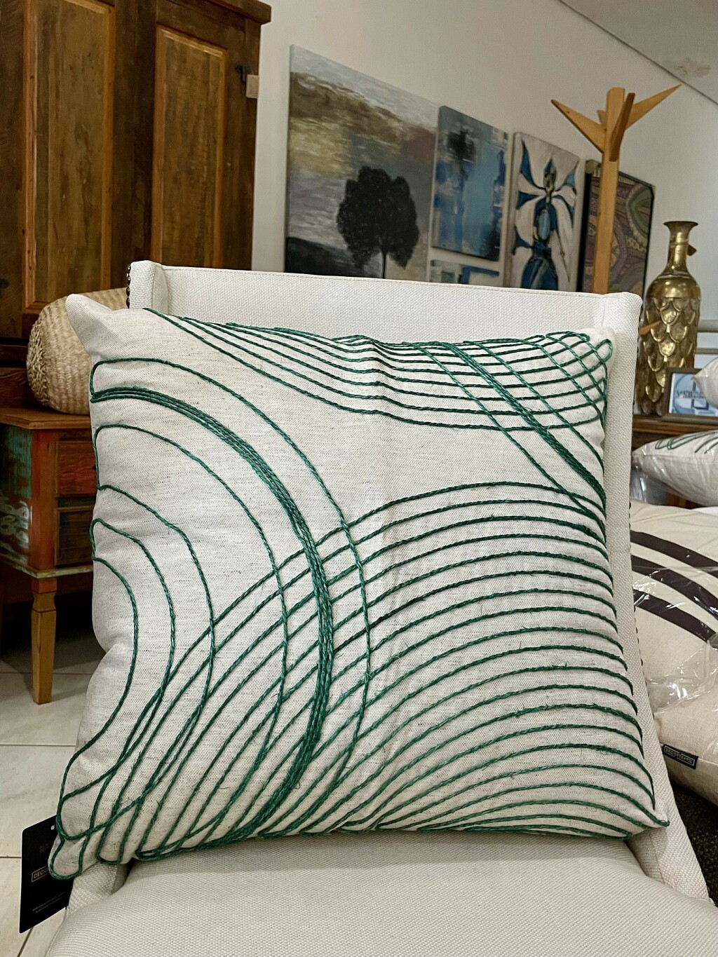 Almofada Linho Cru - C/Rami Cor Verde Mod 1 | 52x52cm