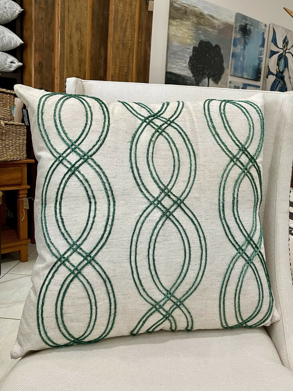 Almofada Linho Cru - C/Rami Cor Verde Mod 2 52x52cm
