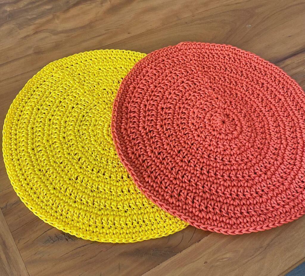 Sousplat feito à mão em crochê com corda náutica na cor amarero. Elegante e resistente, é ideal para compor mesas sofisticadas com um toque artesanal. A corda náutica garante maior durabilidade e fácil manutenção, sendo perfeita para o uso diário ou ocasiões especiais.
